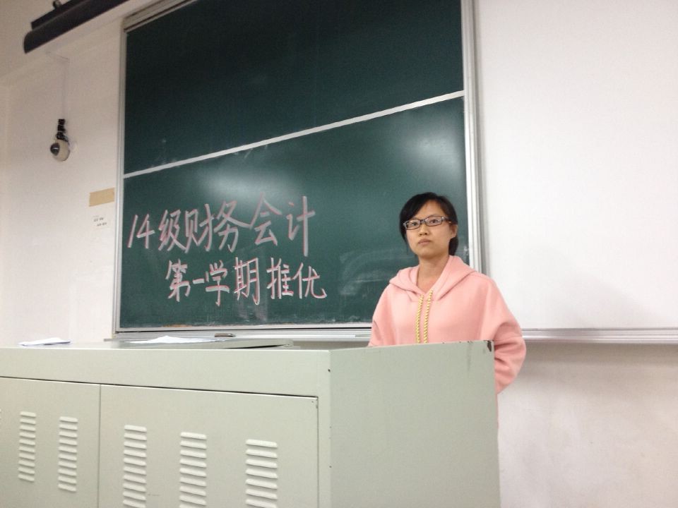 2014年11月23日17:30分,东华大学旭日工商管理学院会计1401班、会计1402班和财务1401班在第四教学楼110教室举行第一学期推优大会。