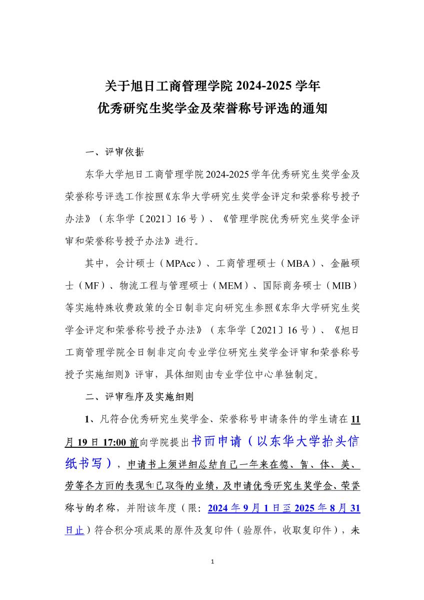 东华大学旭日工商管理学院研究生国家奖学金评审办法 (2025年8月修订版)