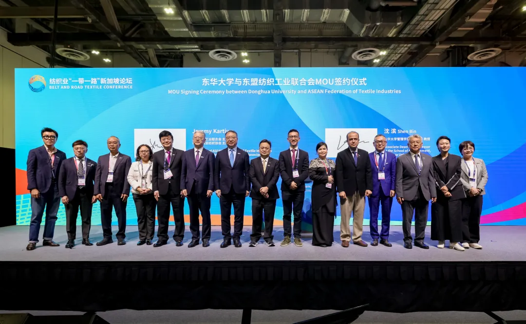 在论坛上,东华大学管理学院副院长沈滨教授代表学校做《提升“一带一路”纺织服装产业合作》主题报告,并与东盟纺联主席Jemmy Kartiwa正式签署合作协议。双方将共建“一带一路”背景下的纺织服装产业管理与创新人才培养体系,围绕供应链管理、产业链协同、绿色低碳转型、数字化与智能化管理等主题开展联合科研和案例研究;搭建面向东盟和“一带一路”沿线的企业培训与高端人才研修平台,为区域纺织企业提供管理咨询与智力支持;推动行业标准、评价体系与管理实践的交流互鉴,服务区域纺织产业高质量发展。
